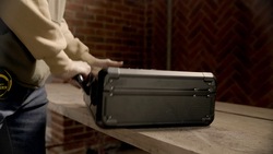 - Capac superior: Clește reglabil 250mm, clește tăiere diagonală 160mm, clește vârf semirotund 160mm, clește combinat 160mm, foarfecă 182mm, cheie reglabilă 250mm, organizator 6 compartimente.
